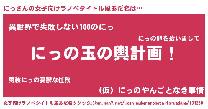 | 男性向けラノベタイトル風あだ名 | 『転生したらにっだった件』『にっの憂鬱』 |
