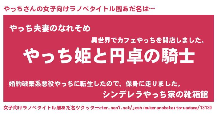 | 男性向けラノベタイトル風あだ名 | 『ヤッチアートオンライン』 |