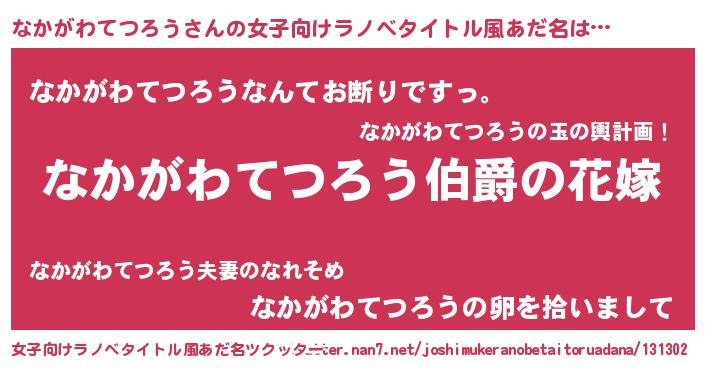 | 意味不明あだ名 | 『なかがわてつろうフォーエバー』 |