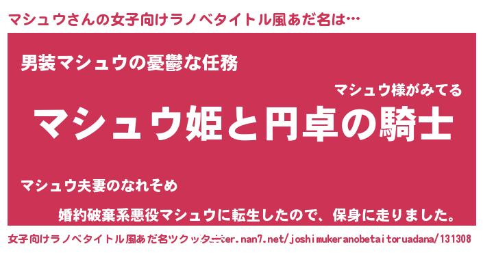 | 男性向けラノベタイトル風あだ名 | 『マシュウアートオンライン』 |