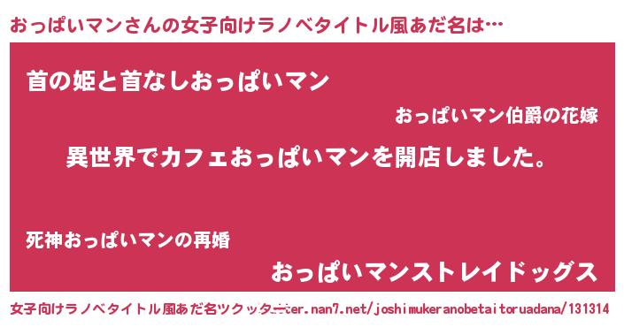 | 胡散臭い通販商品みたいなあだ名 | 『前代未聞の健康食品…その名も「おっぱいマン」』 |