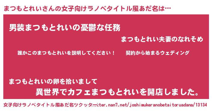 | 男性向けラノベタイトル風あだ名 | 『マツモトレイアートオンライン』 |
