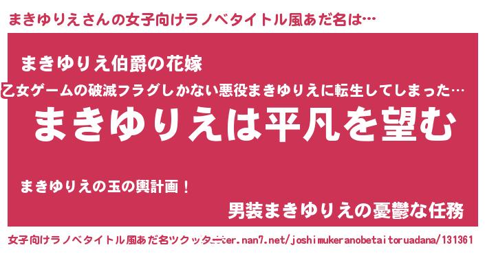 | 意味不明あだ名 | 『とにかく怪しいまきゆりえ』 |