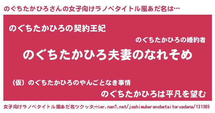 | 男性向けラノベタイトル風あだ名 | 『おまえをオタクにしてやるから、俺をのぐちたかひろにしてくれ! 』 |