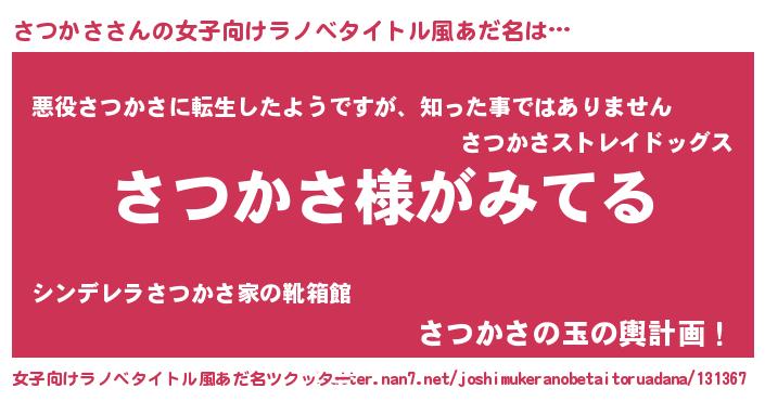 | 意味不明あだ名 | 『とにかく怪しいさつかさ』 |