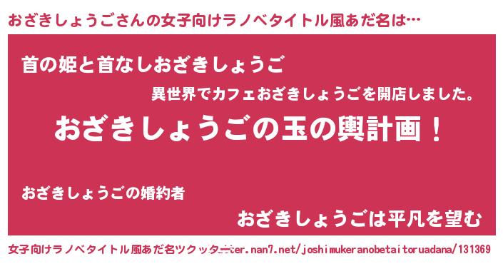 | 男性向けラノベタイトル風あだ名 | 『おざきしょうご~年齢イコール彼女いない歴の魔法使い~』 |