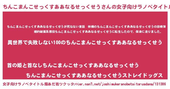 | 胡散臭い通販商品みたいなあだ名 | 『絶対に幸福をもたらす健康食品…その名も「ちんこまんこせっくすああなるせっくせう」』 |
