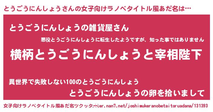 | 胡散臭い通販商品みたいなあだ名 | 『世界が平和になる高級そうな絵画…その名も「とうごうにんしょう」』 |
