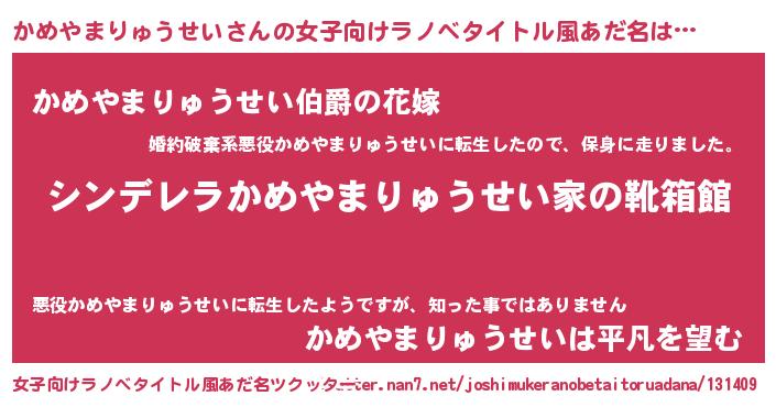| ヒーロー風カッコイイあだ名 | 『ウルトラかめやまりゅうせいマン』 |