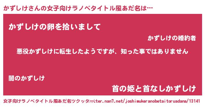 | 男性向けラノベタイトル風あだ名 | 『この素晴らしい世界にかずしけを!』 |