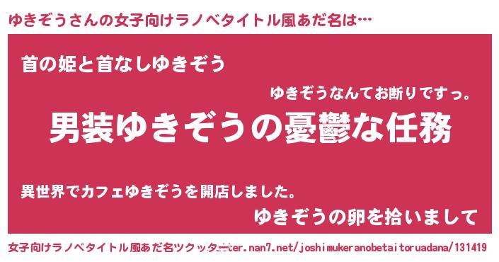 | 男性向けラノベタイトル風あだ名 | 『うちのゆきぞうが世界を掌握している!』 |