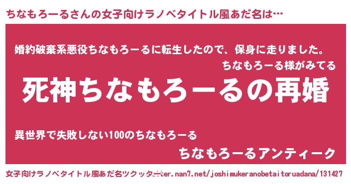 | 男性向けラノベタイトル風あだ名 | 『ノーゲーム・ノーチナモロール』 |