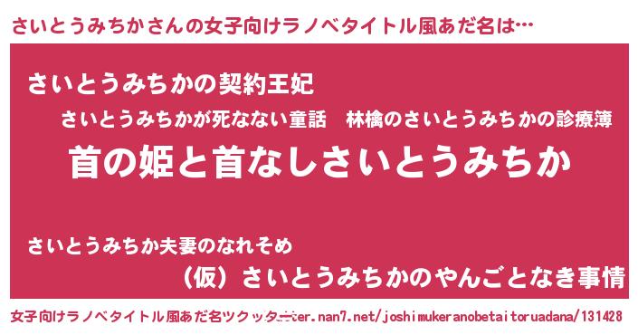 | ヘコむあだ名 | 『さいとうみちか(笑)』『さいにゅー』 |