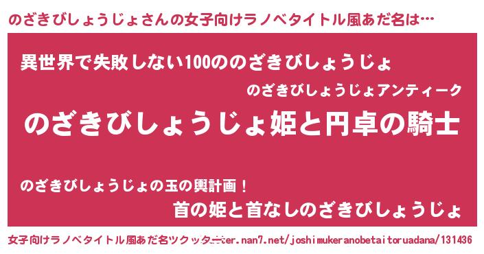| 男性向けラノベタイトル風あだ名 | 『のざきびしょうじょの憂鬱』 |