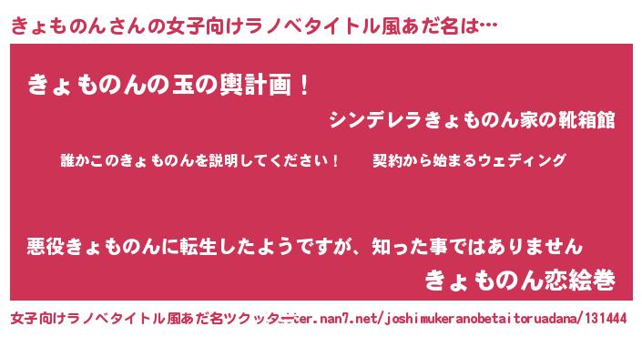 | 男性向けラノベタイトル風あだ名 | 『キョモノンアートオンライン』 |