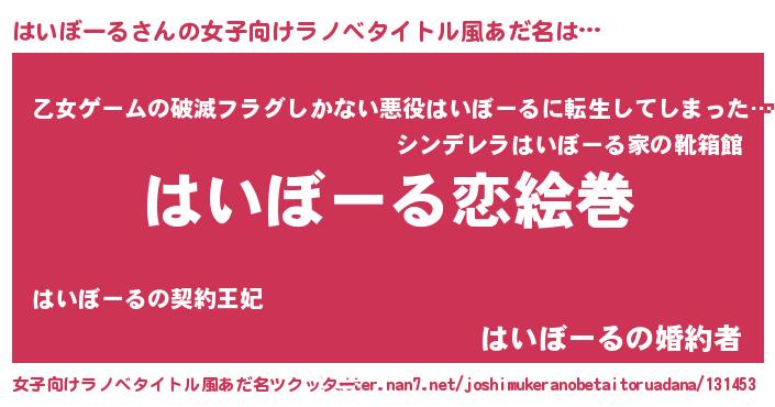 | 男性向けラノベタイトル風あだ名 | 『ノーゲーム・ノーハイボール』 |