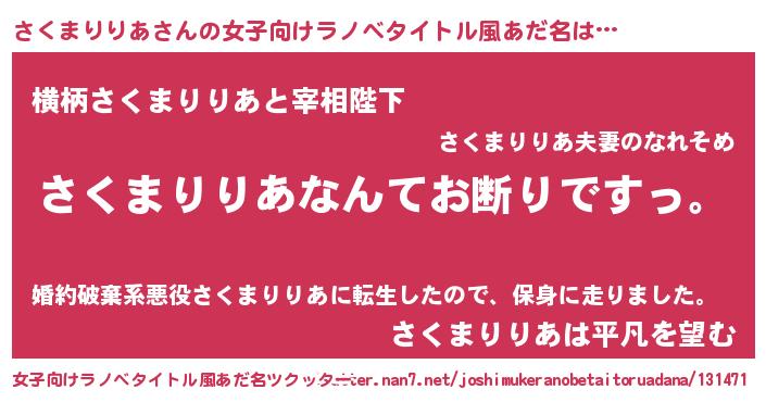 | 意味不明あだ名 | 『自称さくまりりあ』 |