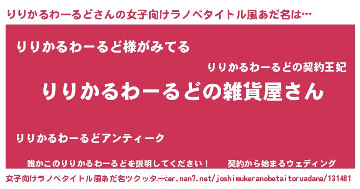 | 胡散臭い通販商品みたいなあだ名 | 『幸せが訪れる高級そうな絵画…その名も「りりかるわーるど」』 |