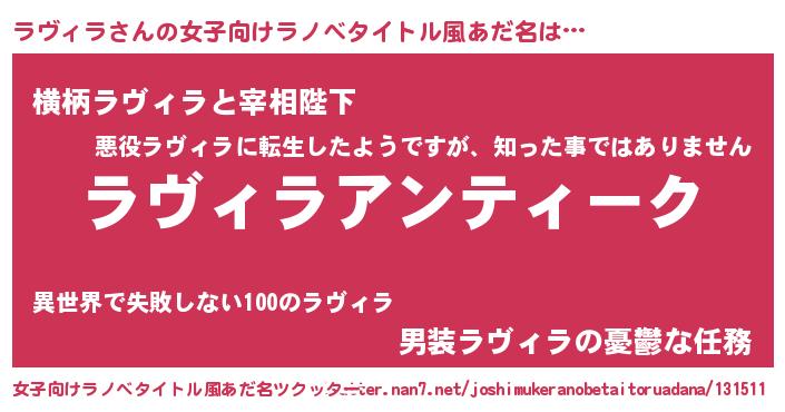 | 意味不明あだ名 | 『自称ラヴィラ』『永久保存ラヴィラ』 |