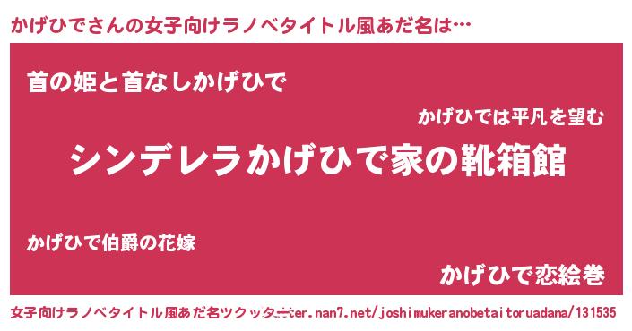 | ヘコむあだ名 | 『かげぷりん』『豆乳』『かげにー』 |