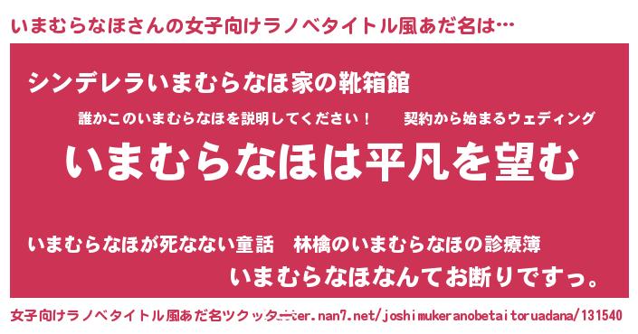 | 男性向けラノベタイトル風あだ名 | 『ダンジョンにいまむらなほを求めるのは間違っているだろうか』 |