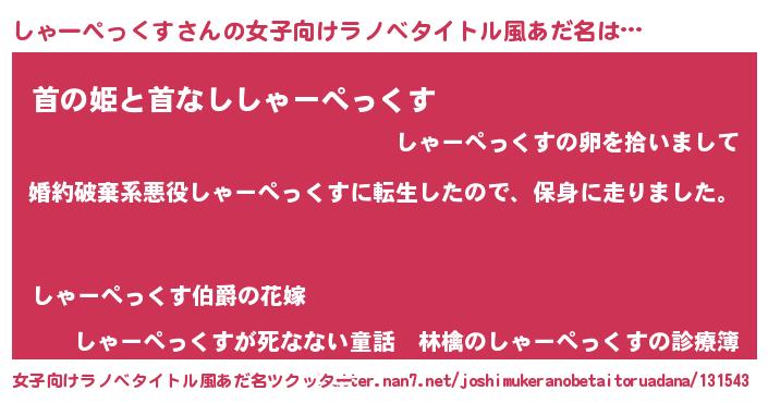 | 男性向けラノベタイトル風あだ名 | 『シャーペックススレイヤー』 |