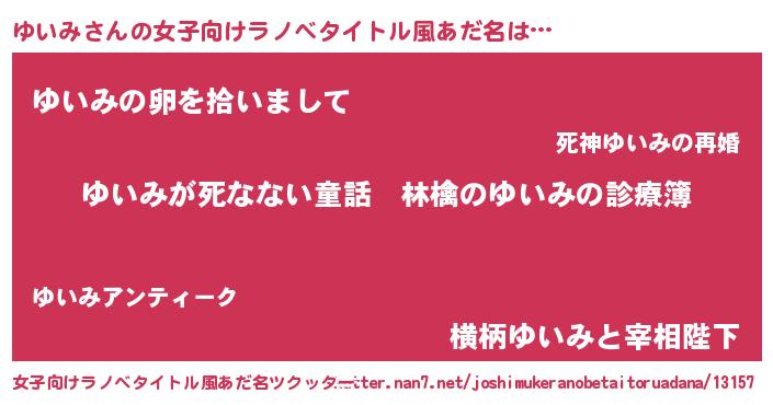 | 意味不明あだ名 | 『住所不定無職ゆいみ(13歳)』『自称ゆいみ』 |