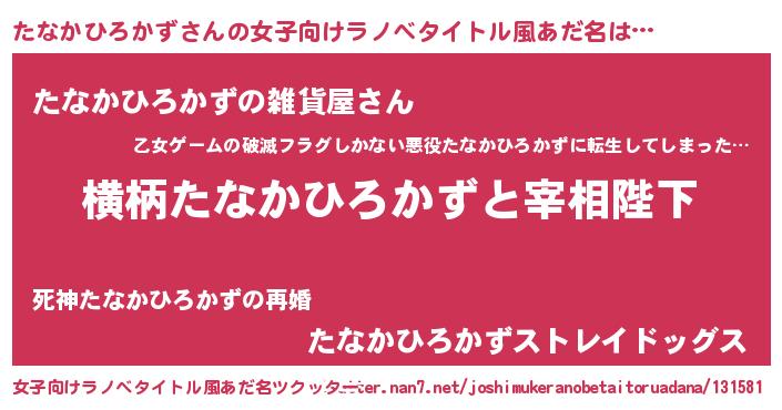 | 男性向けラノベタイトル風あだ名 | 『たなかひろかずに滅ぼされるだけの簡単なお仕事です』 |