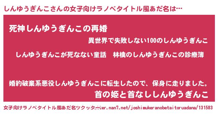 | 意味不明あだ名 | 『住所不定無職しんゆうぎんこ(77歳)』 |