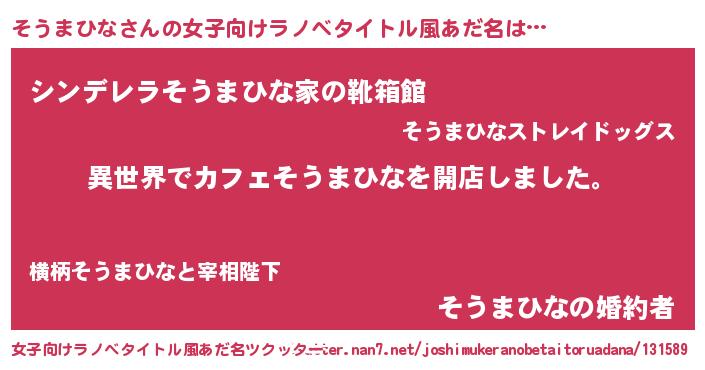 | 男性向けラノベタイトル風あだ名 | 『誰もが恐れるあのそうまひなが、ぼくの専属メイドになるようです。』 |
