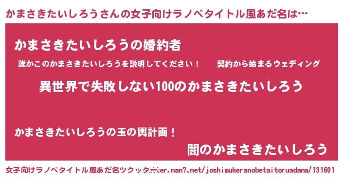| 意味不明あだ名 | 『永久保存かまさきたいしろう』 |