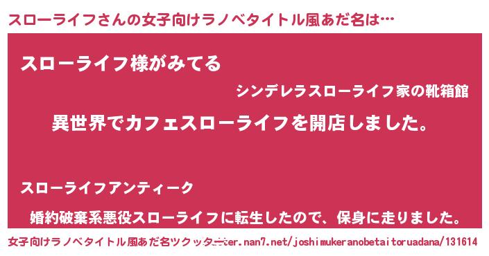 | 意味不明あだ名 | 『永久保存スローライフ』 |