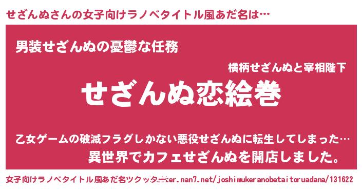 | 男性向けラノベタイトル風あだ名 | 『ノーゲーム・ノーセザンヌ』 |