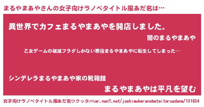 | 意味不明あだ名 | 『住所不定無職まるやまあや(81歳)』 |