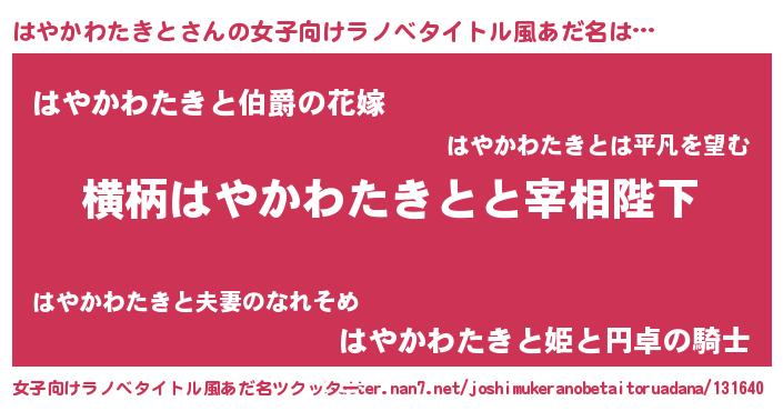 | 胡散臭い通販商品みたいなあだ名 | 『世界が平和になる高級そうな絵画…その名も「はやかわたきと」』 |