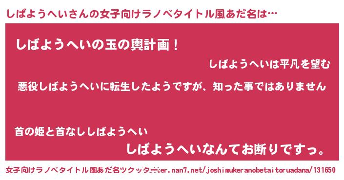 | 男性向けラノベタイトル風あだ名 | 『この素晴らしい世界にしばようへいを!』 |
