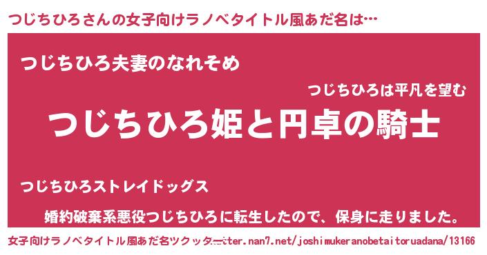 | 男性向けラノベタイトル風あだ名 | 『つじちひろの憂鬱』 |