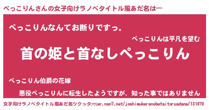 | 男性向けラノベタイトル風あだ名 | 『はたらくぺっこりんさま!』 |