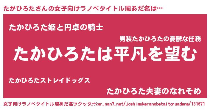 | 恥ずかしいあだ名 | 『タカリンリン』『プリティーたかひろた』 |