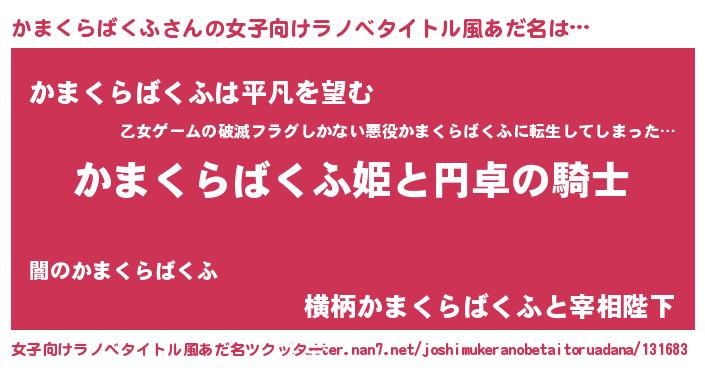 | 男性向けラノベタイトル風あだ名 | 『かまくらばくふの憂鬱』 |