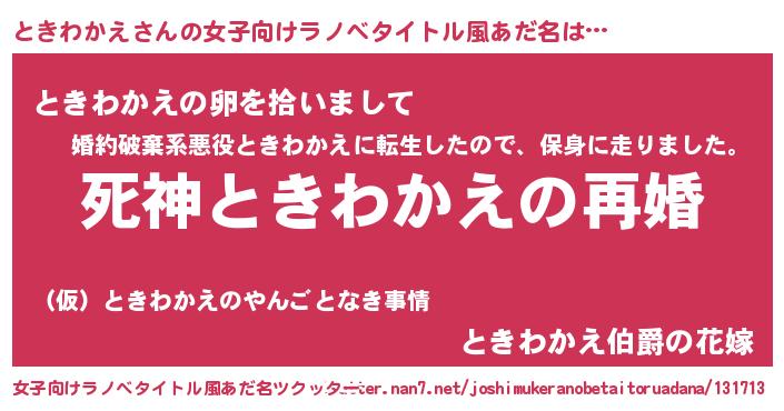 | ヘコむあだ名 | 『ときぷりん』『なまこ酢』 |