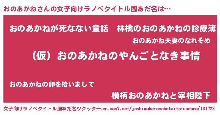 | 男性向けラノベタイトル風あだ名 | 『おのあかねの憂鬱』 |