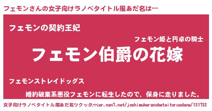 | ファンタジー風あだ名 | 『エターナルフェモンー』『フェフェル』 |