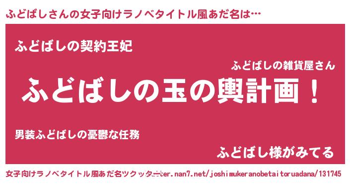 | 胡散臭い通販商品みたいなあだ名 | 『前代未聞の健康食品…その名も「ふどばし」』 |