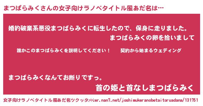 | 胡散臭い通販商品みたいなあだ名 | 『億万長者になれるブレスレット…その名も「まつばらみく」』 |