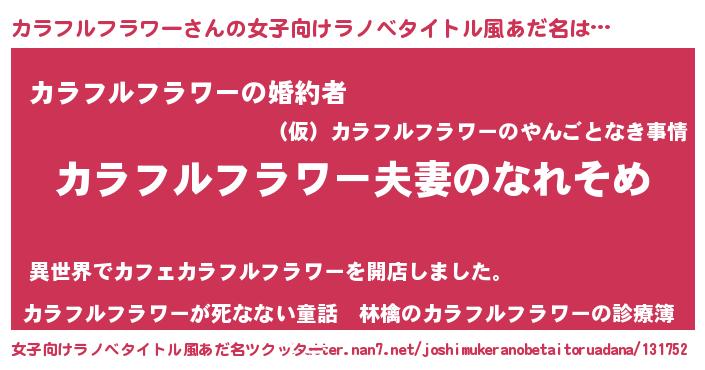 | 男性向けラノベタイトル風あだ名 | 『おまえをオタクにしてやるから、俺をカラフルフラワーにしてくれ! 』 |