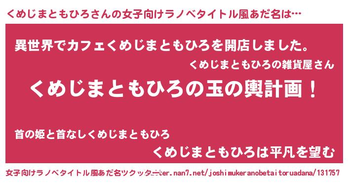 | 可愛いあだ名 | 『くめぷりん』『くめじまともひろママ』 |