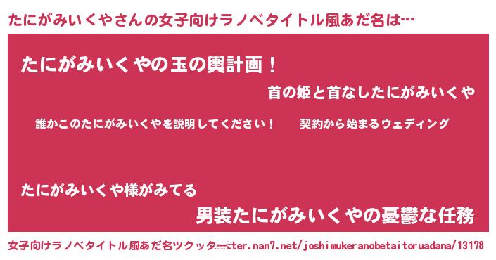 | 胡散臭い通販商品みたいなあだ名 | 『億万長者になれる霊験あらたかなお札…その名も「たにがみいくや」』 |