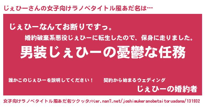 | 男性向けラノベタイトル風あだ名 | 『うちのじぇひーが世界を掌握している!』 |