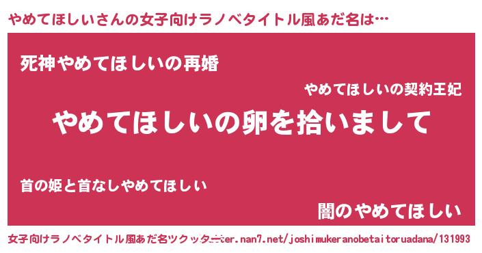 | 胡散臭い通販商品みたいなあだ名 | 『伝統あるサプリメント…その名も「やめてほしい」』 |
